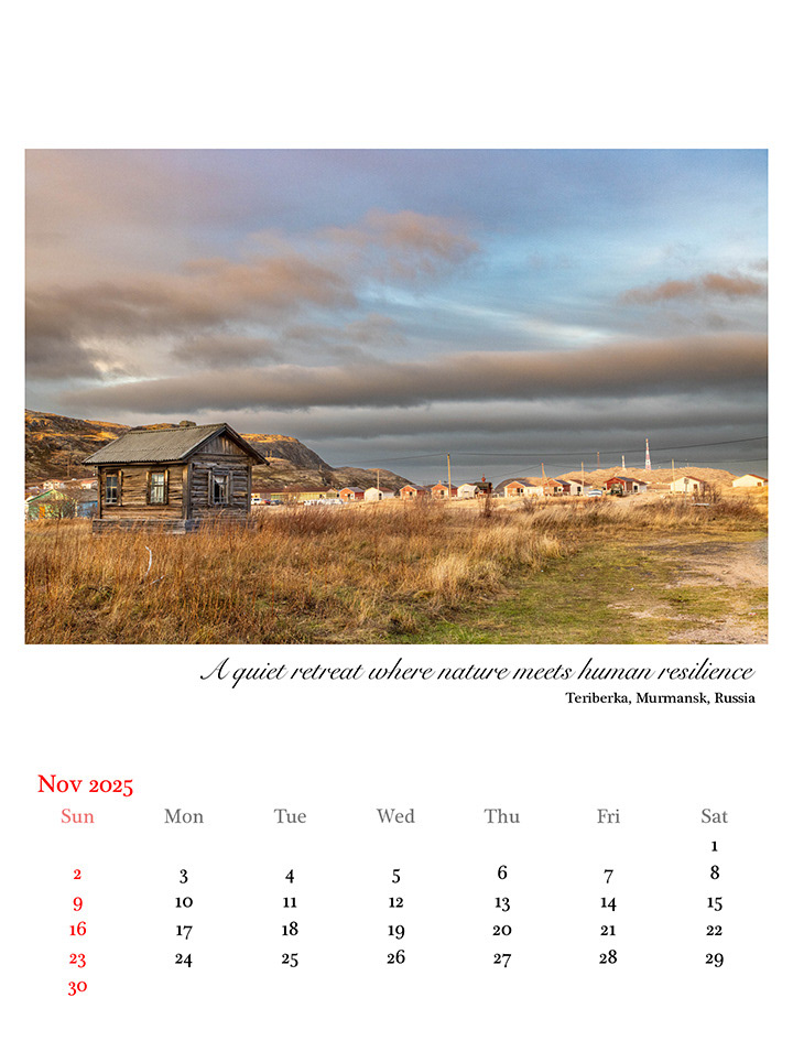 Add a touch of nature's beauty to your space with our exclusive 2025 calendar, carefully curated to showcase stunning landscapes and captivating moments. Each month features a unique photograph, capturing the essence of vibrant destinations and breathtaking natural wonders. From the lush greenery of Munnar in January to the serene winter landscapes in December, this calendar brings the world’s most beautiful places right to your doorstep. The vivid images, such as the tranquil city lights of Almaty and the graceful elegance of reindeer in frosty wilderness, transform each month into a visual journey.